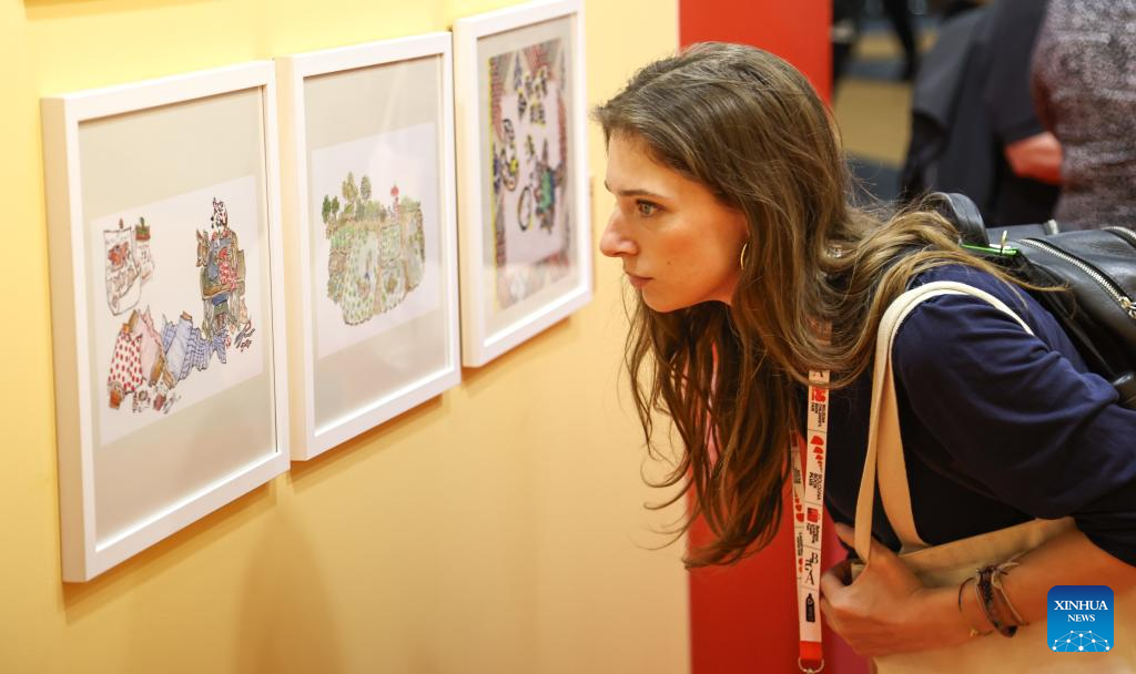 BOLONIA, 15 abril, 2026 (Xinhua) -- Imagen del 14 de abril de 2026 de una mujer visitando el área de exposición china durante la 63 Feria del Libro Infantil de Bolonia, en Bolonia, Italia. Las editoriales chinas han presentado una gran cantidad de libros infantiles para promover la literatura china entre los jóvenes lectores a nivel mundial. (Xinhua/Wang Kaiyan)