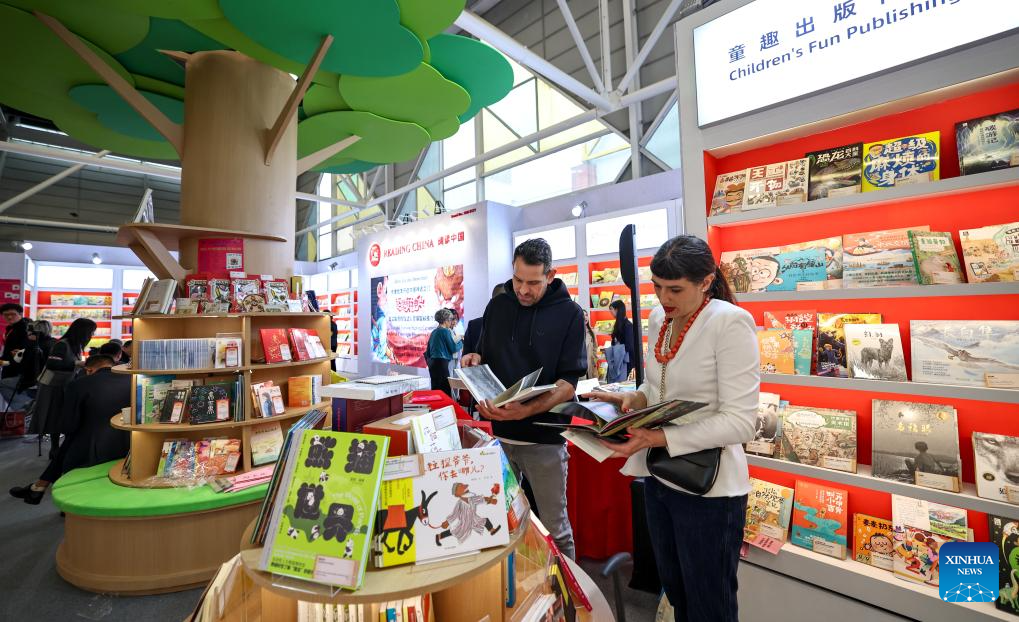 BOLONIA, 15 abril, 2026 (Xinhua) -- Imagen del 14 de abril de 2026 de personas leyendo en el área de exposición china durante la 63 Feria del Libro Infantil de Bolonia, en Bolonia, Italia. Las editoriales chinas han presentado una gran cantidad de libros infantiles para promover la literatura china entre los jóvenes lectores a nivel mundial. (Xinhua/Wang Kaiyan)