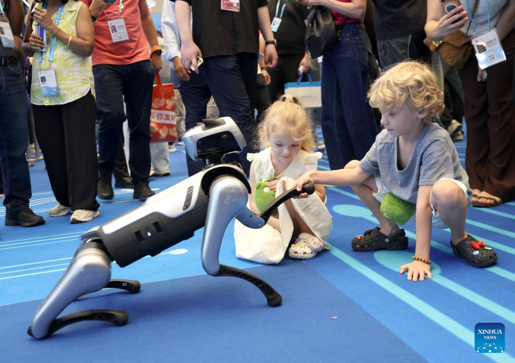GUANGZHOU, 17 abril, 2026 (Xinhua) -- Imagen del 15 de abril de 2026 de un niño estrechando la mano de un perro robot en la edición número 139 de la Feria de Importación y Exportación de China, en Guangzhou, en la provincia de Guangdong, en el sur de China. La edición número 139 de la Feria de Importación y Exportación de China, también conocida como la Feria de Cantón, se inauguró aquí el miércoles. En el evento se ha habilitado un área de exposición para robots de servicio, que reúne a 46 empresas para mostrar las innovaciones tecnológicas y las capacidades de aplicación del sector de los robots de servicio de China. (Xinhua/Lu Hanxin)