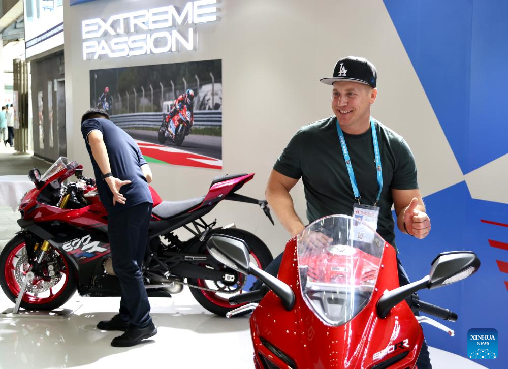 GUANGZHOU, 17 abril, 2026 (Xinhua) -- Visitantes observan productos del fabricante chino de motocicletas ZXMOTO en la edición número 139 de la Feria de Importación y Exportación de China, en Guangzhou, en la provincia de Guangdong, en el sur de China, el 17 de abril de 2026. La reciente e histórica doble victoria del fabricante chino de motocicletas ZXMOTO en la categoría World Supersport en la ronda de Portugal del Campeonato Mundial de Superbikes ha atraído una atención generalizada. (Xinhua/Lu Hanxin)