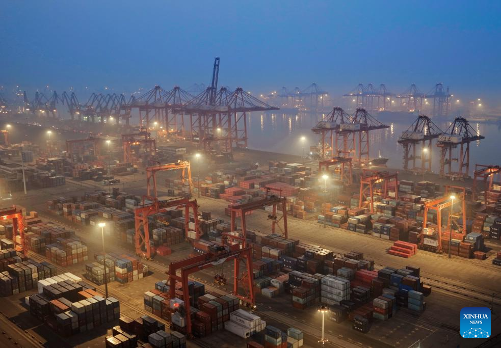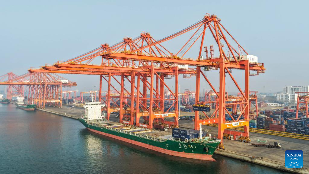 TANGSHAN, 18 abril, 2026 (Xinhua) -- Imagen del 17 de abril de 2026 de una terminal de contenedores del área de Jingtang del puerto de Tangshan, en Tangshan, en la provincia de Hebei, en el norte de China. De acuerdo a las autoridades, el volumen de carga del puerto de Tangshan alcanzó los 215,48 millones de toneladas en el primer trimestre de 2026, lo que representa un aumento interanual del 3,67 por ciento. (Xinhua/Liu Mancang)