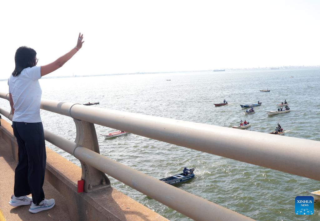 Imagen proveída por la Presidencia de Venezuela de la presidenta encargada venezolana, Delcy Rodríguez, saludando durante el inicio de la "Gran Peregrinación Nacional" en el Puente General Rafael Urdaneta, en el estado Zulia, Venezuela, el 19 de abril de 2026. Organizaciones sociales, políticas y religiosas iniciaron el domingo en Venezuela la llamada "Gran Peregrinación Nacional" convocada por Rodríguez para exigir el cese de las sanciones estadounidenses y pronunciarse en favor de la paz, informó el Gobierno del país sudamericano. (Xinhua/Presidencia de Venezuela)