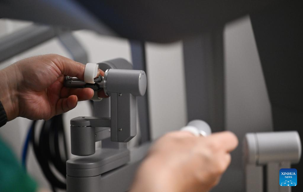 TIANJIN, 20 abril, 2026 (Xinhua) -- Imagen del 19 de abril de 2026 de un doctor utilizando un robot quirúrgico da Vinci en el Instituto y Hospital del Cáncer de la Universidad Médica de Tianjin, en Tianjin, en el norte de China. En los últimos años, el Instituto y Hospital del Cáncer de la Universidad Médica de Tianjin ha seguido avanzando en su experiencia en cirugía mínimamente invasiva. El hospital cuenta actualmente con tres robots quirúrgicos da Vinci y ha realizado más de 10.000 cirugías con esta tecnología, estableciendo un sistema de tratamiento multidisciplinario mínimamente invasivo. (Xinhua/Li Ran)