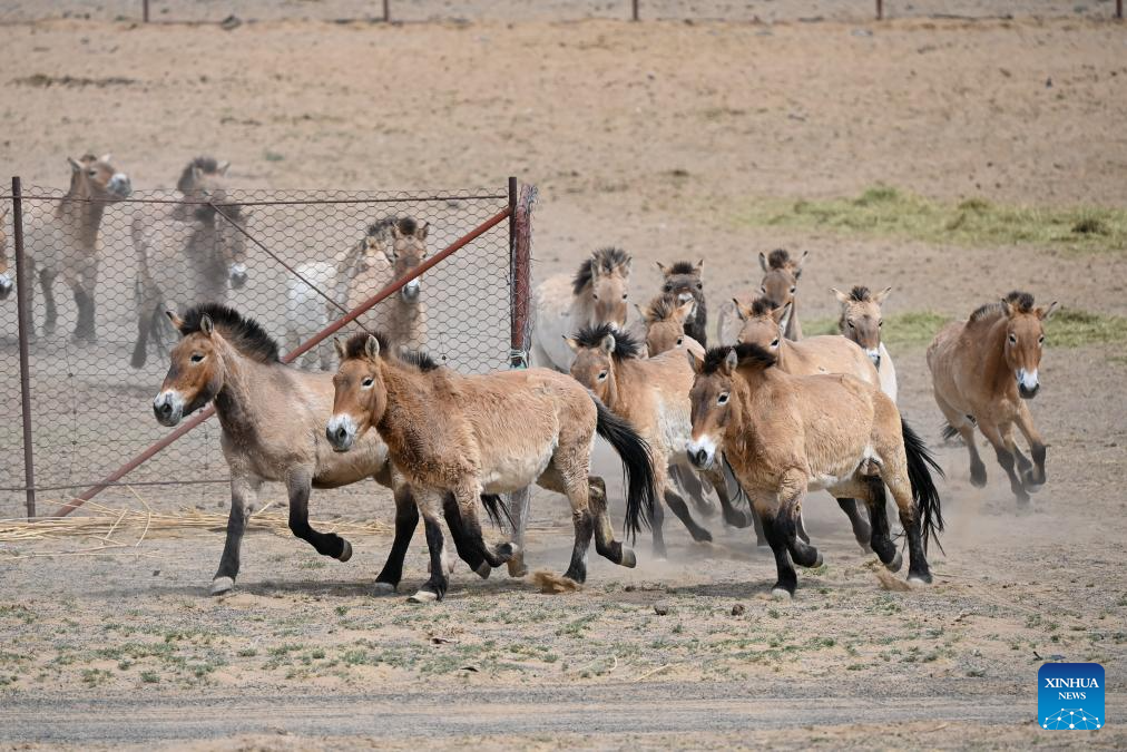 CHANGJI, 22 abril, 2026 (Xinhua) -- Caballos de Przewalski son liberados a la naturaleza en la Reserva Natural de Kalamaili, en la región autónoma uygur de Xinjiang, en el noroeste de China, el 22 de abril de 2026. Un total de 30 caballos de Przewalski fueron reintroducidos con éxito en la Reserva Natural de Kalamaili el miércoles, tras completar su entrenamiento de reintroducción a la vida silvestre. (Xinhua/Ding Lei)