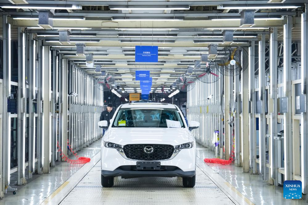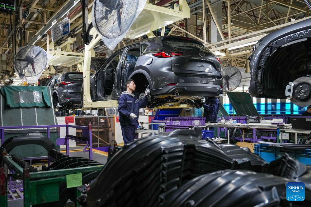 NANJING, 22 abril, 2026 (Xinhua) -- Imagen del 17 de marzo de 2026 de empleados trabajando en una línea de producción en un taller de Changan Mazda, en Nanjing, en la provincia de Jiangsu, en el este de China. En los últimos años, Jiangsu se ha centrado en desarrollar nuevas fuerzas productivas de calidad, apostando por un desarrollo de alta gama, inteligente y globalizado, utilizando la manufactura avanzada para impulsar un crecimiento económico de alta calidad. (Xinhua/Li Bo)