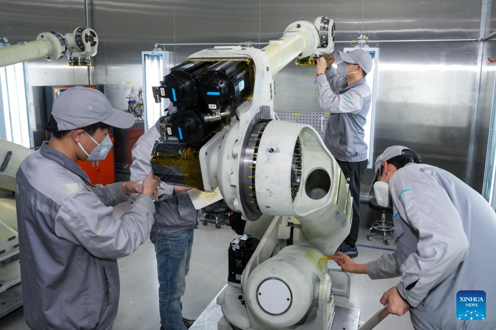 NANJING, 22 abril, 2026 (Xinhua) -- Imagen del 25 de marzo de 2026 de empleados trabajando en un taller de Xuzhou Construction Machinery Group Co., Ltd., en la ciudad de Xuzhou, en la provincia de Jiangsu, en el este de China. En los últimos años, Jiangsu se ha centrado en desarrollar nuevas fuerzas productivas de calidad, apostando por un desarrollo de alta gama, inteligente y globalizado, utilizando la manufactura avanzada para impulsar un crecimiento económico de alta calidad. (Xinhua/Cheng Li)