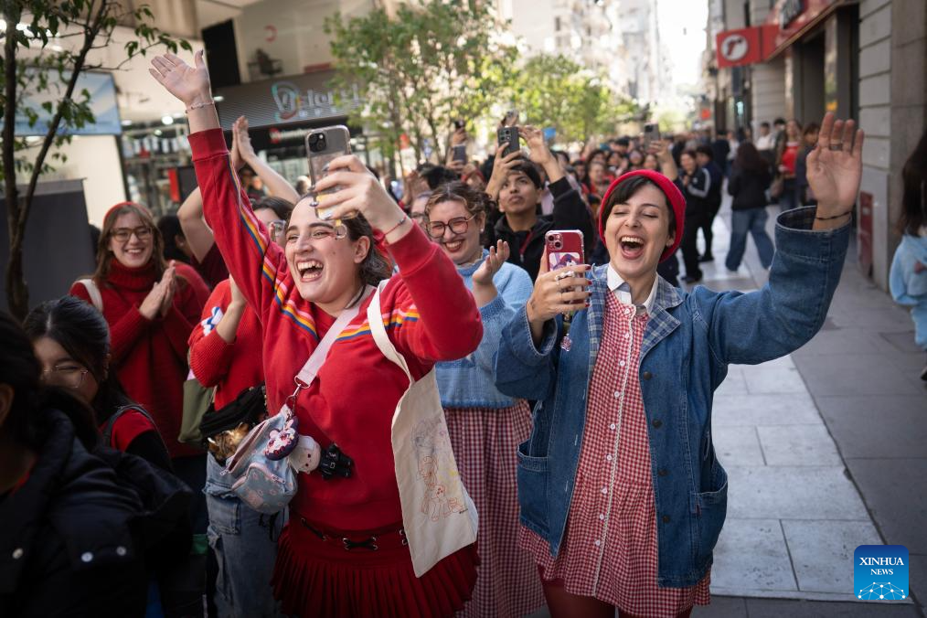 Personas reaccionan mientras esperan formadas para la inauguración de la primera tienda en Argentina de la cadena minorista china Miniso, en la ciudad de Buenos Aires, capital de Argentina, el 23 de abril de 2026. Miniso inauguró el jueves su primera tienda en Argentina, ubicada en el centro de Buenos Aires, marcando el inicio de un ambicioso plan de crecimiento que contempla inversiones por unos 50 millones de dólares. (Xinhua/Martín Zabala)