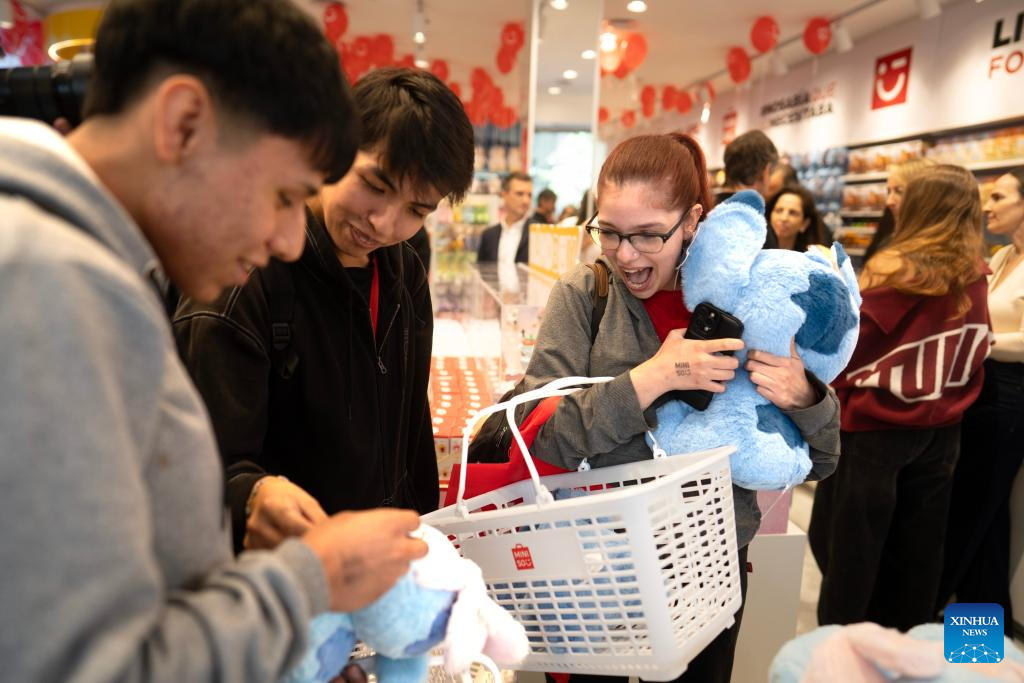 Personas reaccionan mientras observan los productos exhibidos en la primera tienda en Argentina de la cadena minorista china Miniso durante su inauguración, en la ciudad de Buenos Aires, capital de Argentina, el 23 de abril de 2026. Miniso inauguró el jueves su primera tienda en Argentina, ubicada en el centro de Buenos Aires, marcando el inicio de un ambicioso plan de crecimiento que contempla inversiones por unos 50 millones de dólares. (Xinhua/Martín Zabala)