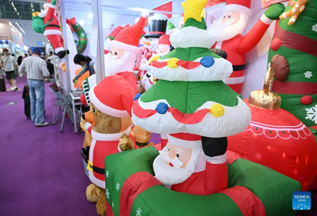 GUANGZHOU, 23 abril, 2026 (Xinhua) -- Objetos de decoración navideña son vistos durante la edición número 139 de la Feria de Importación y Exportación de China, también conocida como la Feria de Cantón, en Guangzhou, en la provincia de Guangdong, en el sur de China, el 23 de abril de 2026. La segunda fase de la edición número 139 de la Feria de Importación y Exportación de China comenzó aquí el jueves. Con una superficie de 515.000 metros cuadrados, la feria cuenta con 25.000 estands y más de 10.000 empresas participantes. (Xinhua/Deng Hua)