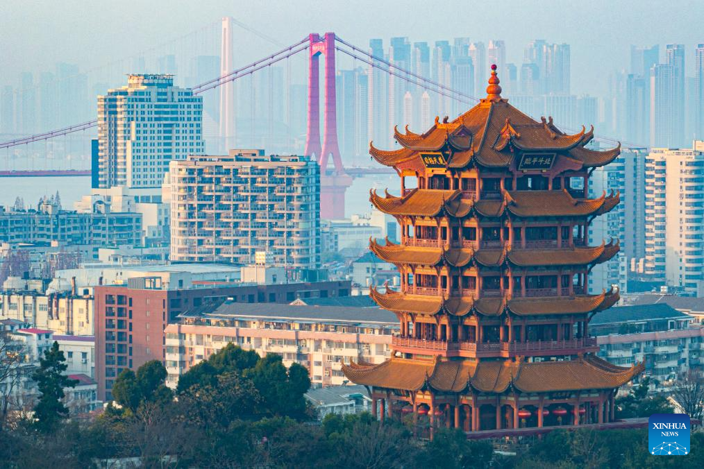 WUHAN, 25 abril, 2026 (Xinhua) -- Imagen tomada con un dron el 26 de diciembre de 2025 del puente Yingwuzhou sobre el río Yangtse y el puente Yangsigang sobre el río Yangtse detrás de la Torre de la Grulla Amarilla, en Wuhan, en la provincia de Hubei, en el centro de China. Actualmente, cerca de 50 puentes han sido terminados o están en construcción a lo largo del tramo de Hubei del río Yangtse. Los servicios de ferry eran el único medio de transporte para cruzar el río antes de octubre de 1957 cuando se puso en funcionamiento el puente carretero y ferroviario de Wuhan, el primero de su tipo en el río Yangtse. Ahora, lo que antes era un cruce de río que consumía mucho tiempo, se puede completar en tan solo diez minutos, lo que facilita los desplazamientos diarios de las personas y allana el camino para un desarrollo regional coordinado. (Xinhua/Xiao Yijiu)