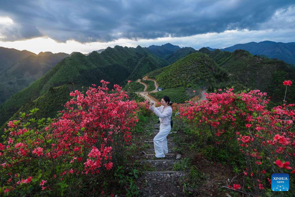 Zhejiang: Turistas disfrutan de azaleas alpinas en flor en aldea de Jinling