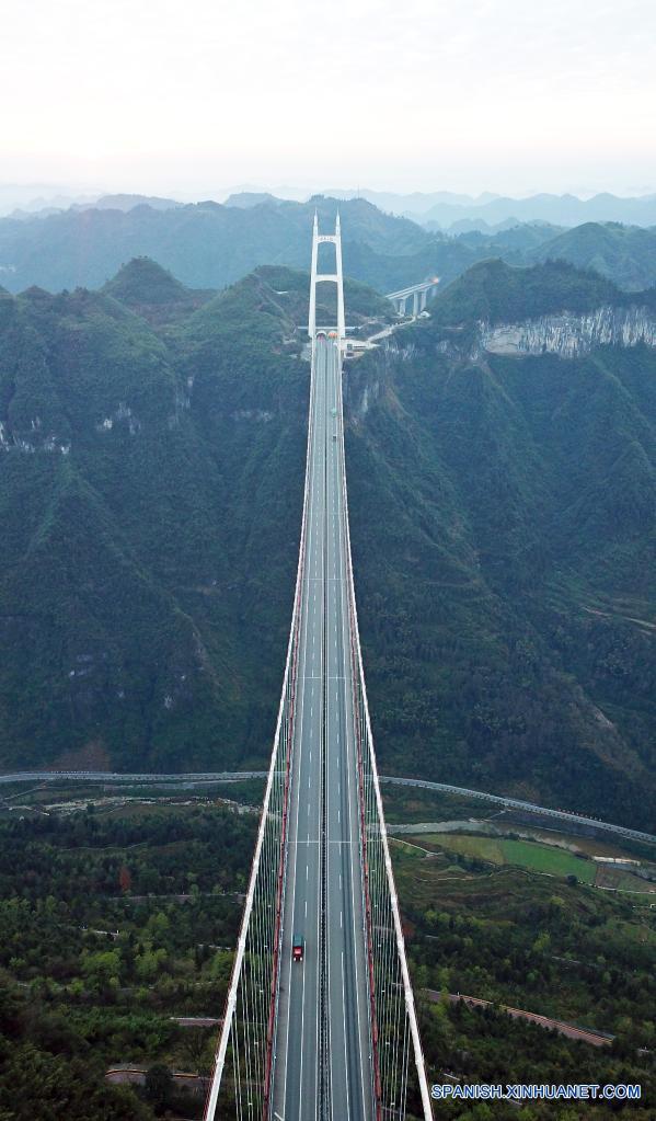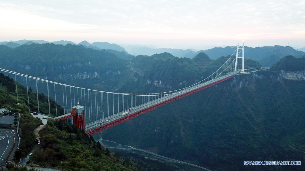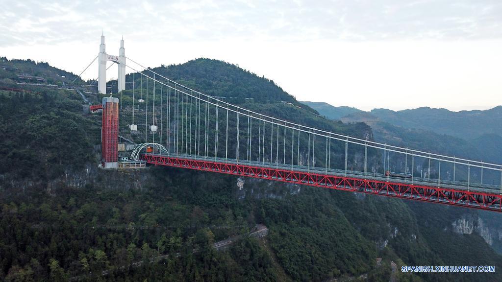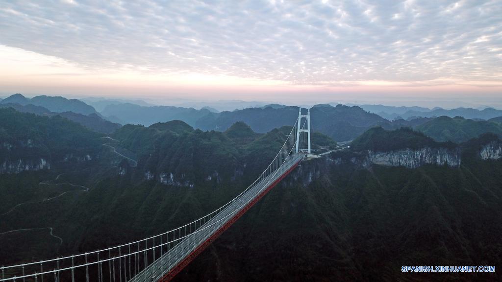 XIANGXI, 2 diciembre, 2021 (Xinhua) -- Vista aérea del 2 de diciembre de 2021 del puente colgante de Aizhai, en la prefectura autónoma de las etnias tujia y miao de Xiangxi, provincia de Hunan, en el centro de China. (Xinhua/Chen Zhenhai)