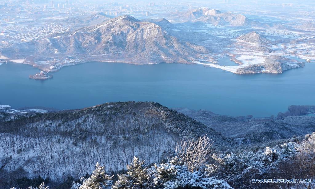 BEIJING, 19 marzo, 2022 (Xinhua) -- Imagen del 19 de marzo de 2022 del paisaje nevado en un embalse en Beijing, capital de China. (Xinhua/Chen Zhonghao)