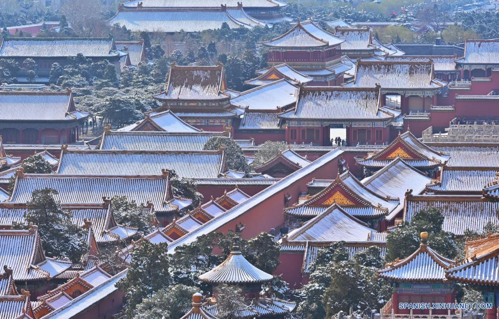 BEIJING, 19 marzo, 2022 (Xinhua) -- Imagen del 19 de marzo de 2022 del paisaje nevado del Museo del Palacio en Beijing, capital de China. (Xinhua/Song Weiwei)