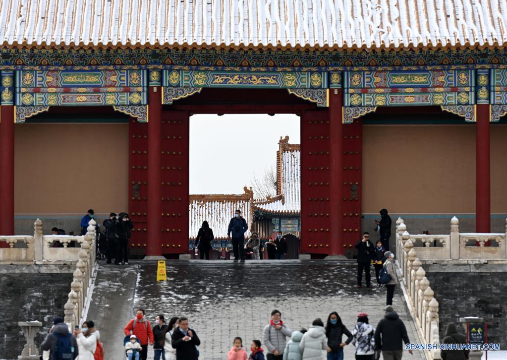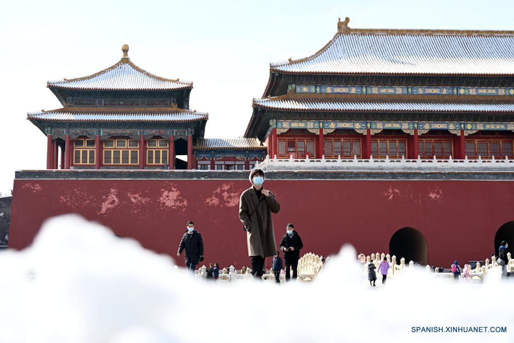 BEIJING, 19 marzo, 2022 (Xinhua) -- Personas visitan el Museo del Palacio después de la nevada, en Beijing, capital de China, el 19 de marzo de 2022. (Xinhua/Jin Liangkuai)
