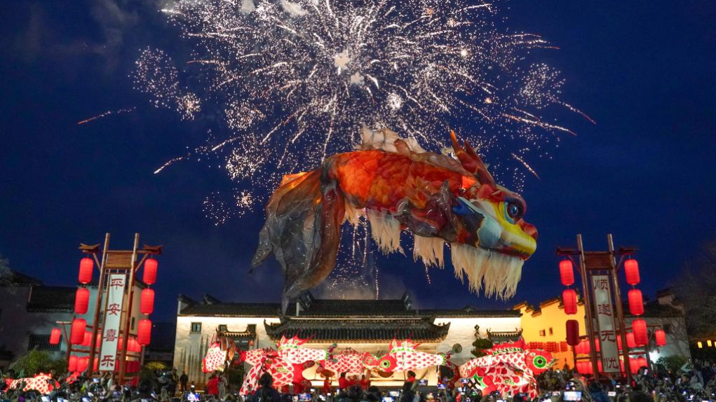 Desfile de linternas de Pez Ao se lleva a cabo en poblado antiguo de Tangmo, Anhui
