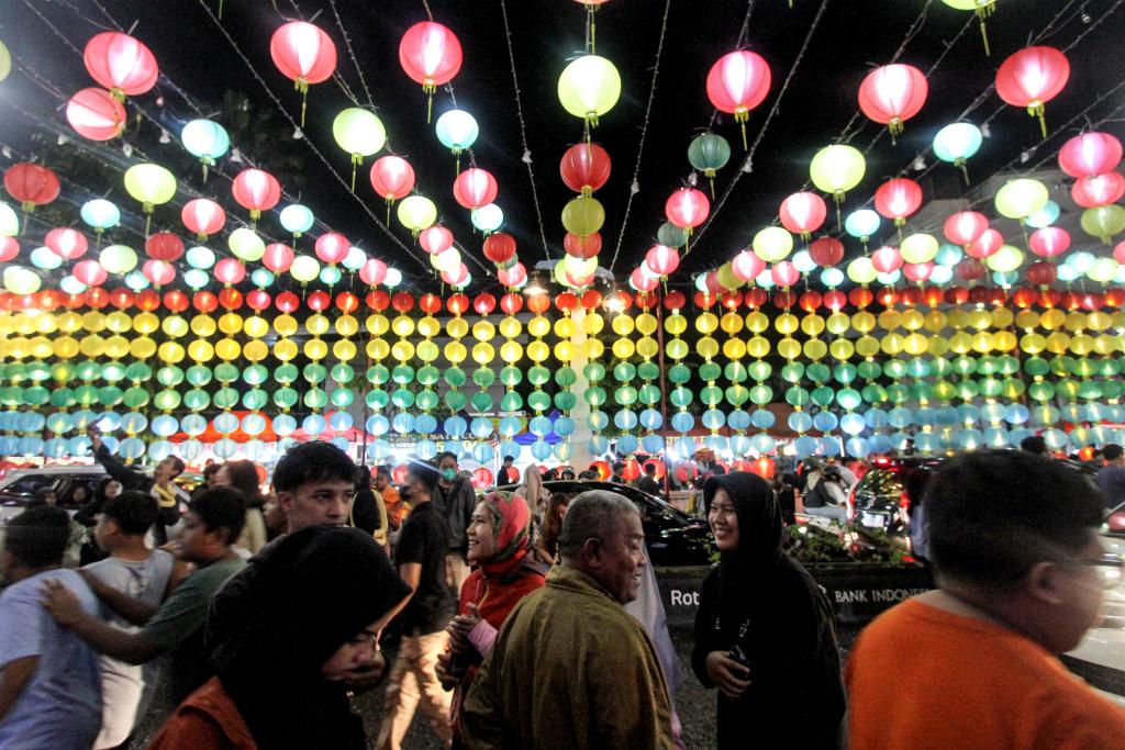 Decoraciones de linternas instaladas para el Año Nuevo chino en Indonesia