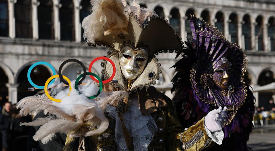 Celebran desfile de Carnaval de Venecia con tema de JJ.OO.
